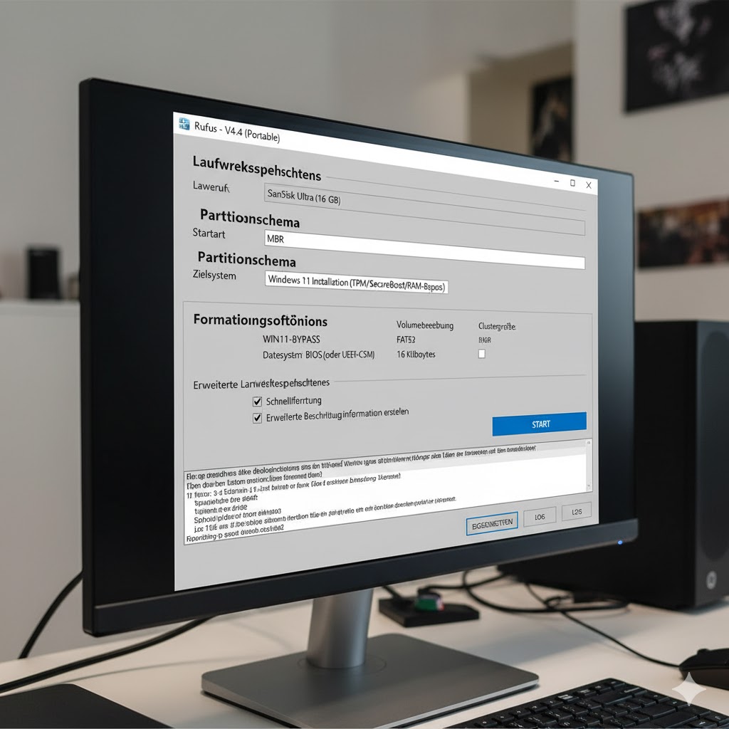 Rufus-Tool Windows 11 auf einem alten PC installiert und somit die