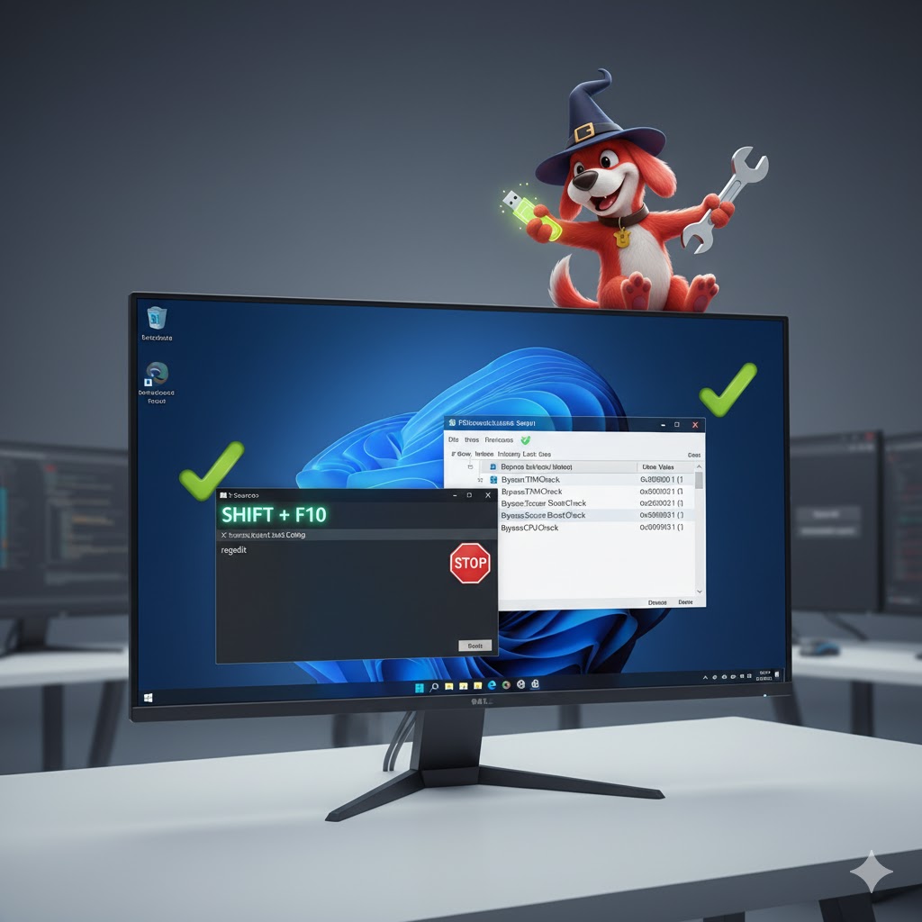 | 💻 | Registry-Hack zur Umgehung der Prüfung | Anleitung Windows 11 auf alter Hardware installieren (WinTotal) | Direkte Anleitung für den Registry-Eingriff (UMSCHALT+F10) zur Umgehung von TPM/CPU-Check bei der Installation. | ![]() |